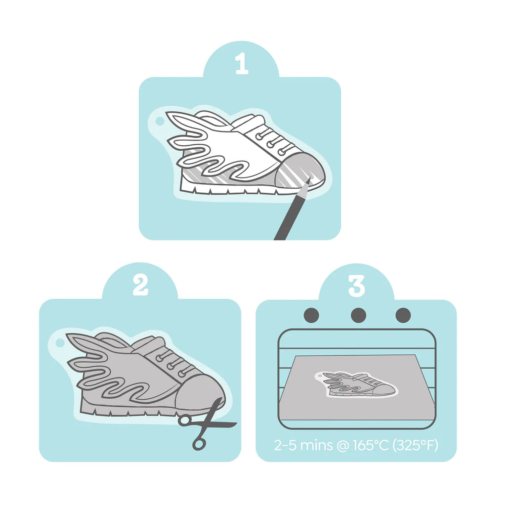 Simply colour the beautifully illustrated pre-cut designs, pop them in the oven and watch them magically shrink to 40% of their original size, in front of your eyes! As your charms shrinks the colours become more intense.