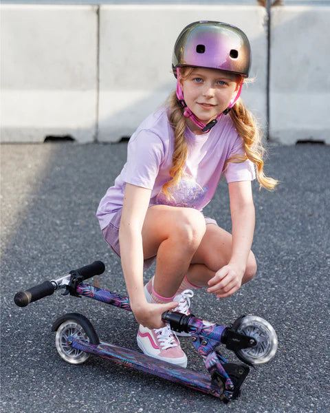 Unique edition of the classic Sprite scooter, where every deck features a one-of-a-kind artistic finish. Combining motion-powered LED wheels with exclusive, vibrant graphics, this collection offers strong visual appeal for customers seeking a scooter that stands out.