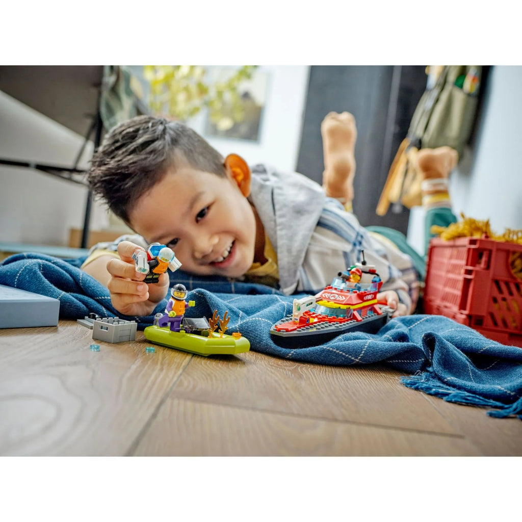 - Toy firefighter boat – Hours of action-packed firefighting fun awaits with this LEGO® City Fire Rescue Boat (60373) playset