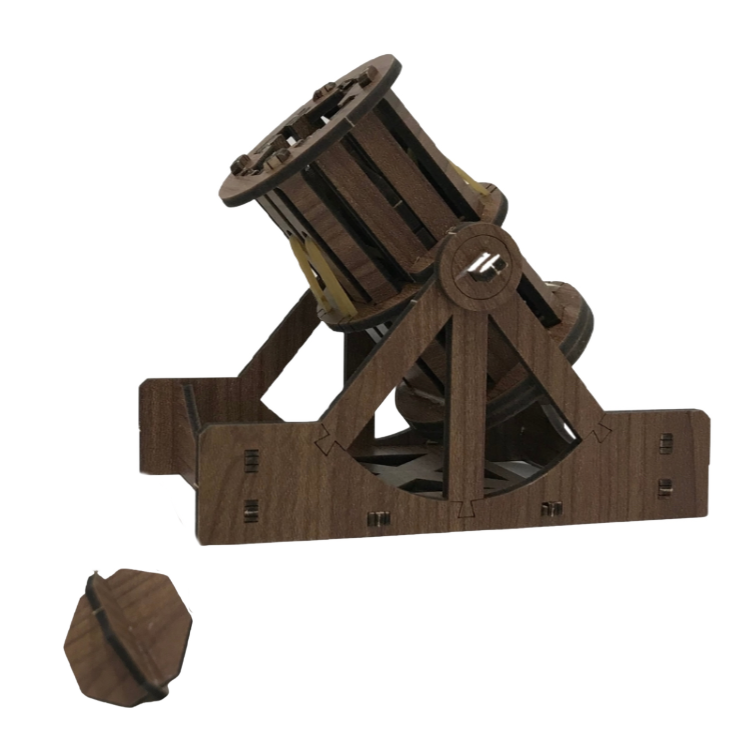 Leonardo designed a wide range of catapults, some functional, some not so much. This Catapult miniature re-creates one of Leonardo’s more interesting designs that uses the power of bent wood to launch projectiles. Make and launch small projectiles up to 10 metres. It really works - try laying siege to a cookie jar! Dimensions once built 18 x 6 x 9 cm.