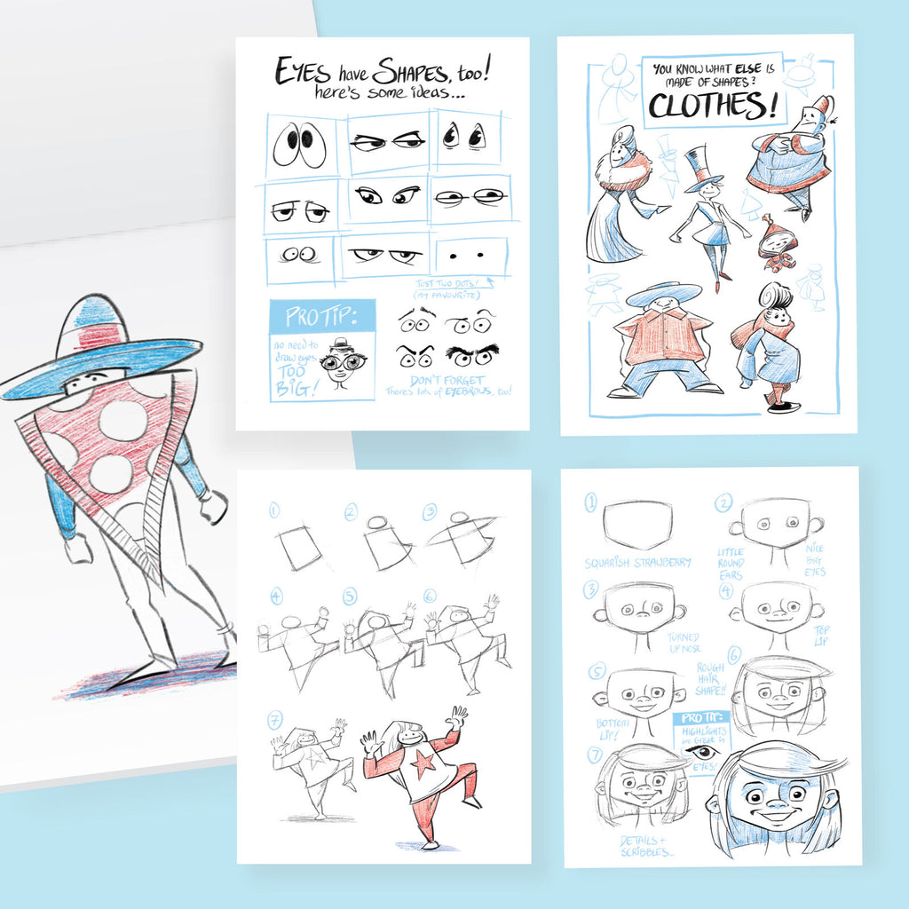 The detailed Drawing Guide will take your child through the steps of drawing people, including body shapes, poses and positions, how to create eye shapes, master the always tricky hands and so much more!