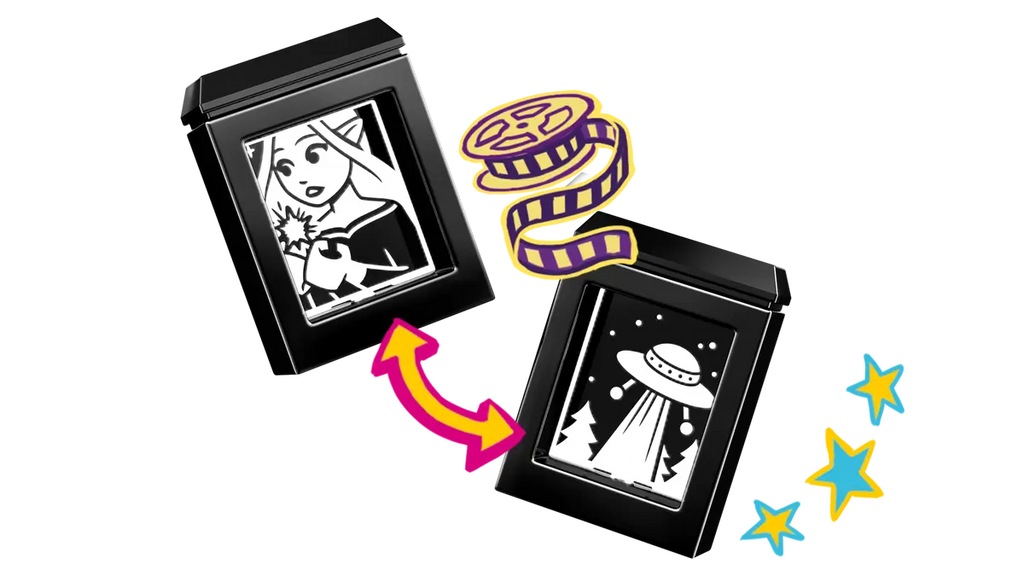 It’s “lights, camera, friendship!” as kids tell the story of friends Paisley and Aliya, who are enjoying a movie night in Paisley’s garden. Slot a movie slide into the projector and press the light brick to make the image appear on the big screen. Discover lots of accessories, including a popcorn machine with a lever to make the popcorn ’pop’! Other accessories include a popcorn box, drinks, a comic book and 2 comfy chairs.
