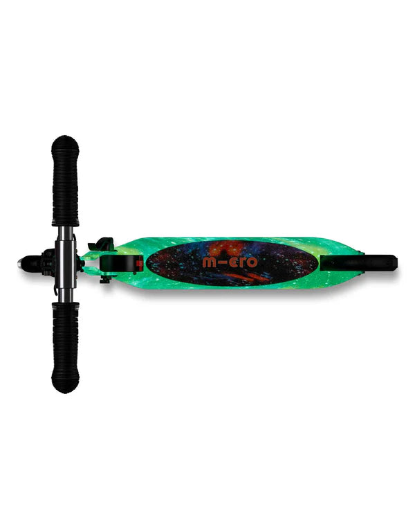 The exclusive Liquid Infusion finish creates an interstellar swirl of colour and depth, making every frame one-of-a-kind. Add to that a glow-in-the-dark frame and LED light-up wheels, and you’ve got the most eye-catching scooter on the planet – guaranteed to turn every journey into an adventure.