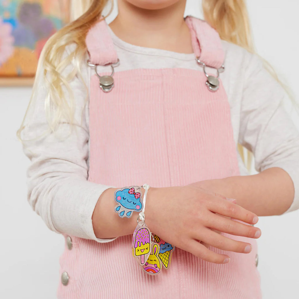 - Once Shrinkies are cool, create your own charm bracelets and necklaces with the enclosed cords and connectors!